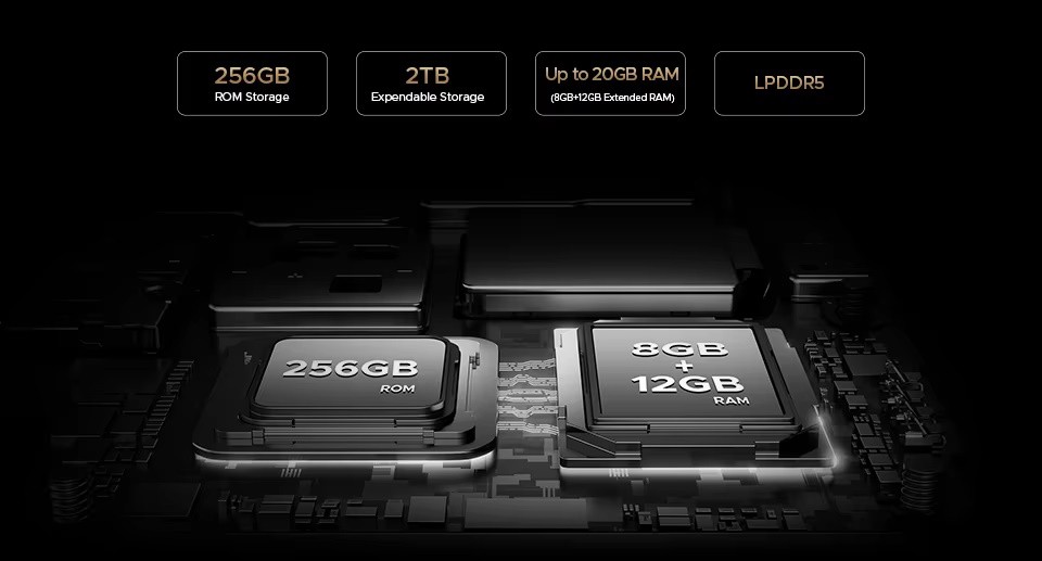 - 8 ГБ + 12 ГБ (расширенная оперативная память) / 256 ГБ ROM